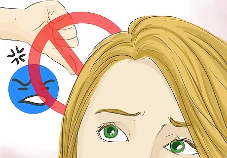 Pay attention to your non-verbals. Make sure that your nonverbal behavior, including body language and tone of voice, matches with what you’re saying. Adjust your tone of voice so that you’re not yelling and making the other person scared, uncomfortable, or more stressed. Some other non-verbals you should pay attention to are: Pacing Clutching objects Crossing your arms tightly Making poor eye contact