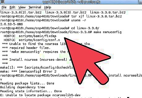 Configure the kernel. There are 4 common ways to do this. Make old configuration -- asks you questions on what the kernel should support one by one, very time consuming. Make menuconfig -- creates a menu where you can browse options on what the kernel supports. Requires ncurses library, but that is likely already on your computer. Make qconfig/xconfig/gconfig -- same as menuconfig, except that now the configuration menu is graphics based."qconfig" Requires the QT library. Use configuration of current kernel. Run this from your kernel source folder "cp /boot/config-`uname -r` .config". This saves a lot of time, but you may want to change version number of the to be compiled kernel to avoid replacing your current kernel. "General setup" --> "Local version - append to kernel release". Example if the kernel version number is 3.13.0, you can example write there 3.13.0.RC1.