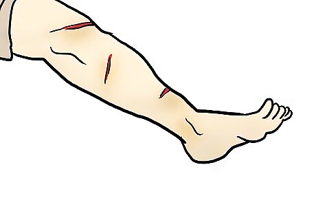 Checking the legs: Gradually move down the legs feeling for any grinding or visible disfigurement. Is there any swelling? Any cuts or contusions (bruises)? Try to find a pulse in the foot(just around the top where the foot meets the ankle); is there a presence or absence of a pulse? Check for an abnormal temperature of one leg, this could indicate thrombosis.