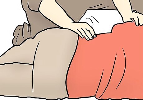 Checking the hips: Rock the hips gently from side-to-side and push down to check that they move freely and are not dislocated.