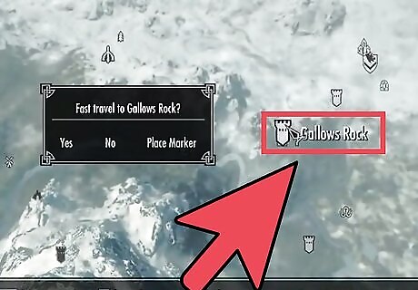 Go to Gallows Rock. After turning back to normal form, Aela will tell you that you need to eliminate a group of werewolf hunters called the Silver Hand residing in a place called Gallows Rock. Exit Whiterun and travel straight eastwards for a few miles past the Valtheim towers and you’ll find a small encampment with a torn down watch tower in the middle. This is Gallows Rock.