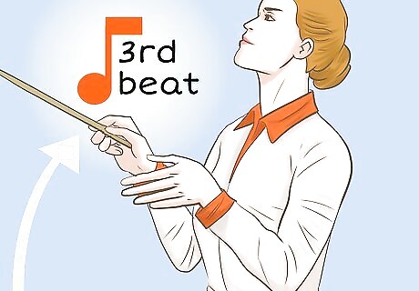 Move your baton or hands to the focal point on the third beat. Bring your baton or hands back up to the focal point from the edges of the conducting space in a smooth motion. Make sure to move your baton or hands with the music so that you hit the focal point on the third beat.