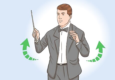 Move your arm from the elbow rather than the shoulder for fast music. If you are conducting high-tempo music, it may be easier to move your arm at the elbow rather than at the shoulder. This will allow you to make quick, swift motions rather than full, sweeping motions. Practice the basic conducting shapes at this different speed to see how it feels. Practice and perfect moving your arm at the shoulder before trying this more advanced style.