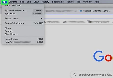 Click the Apple menu on your Mac Mac Apple. You'll see this to the far left in the menu bar that runs horizontally across the top of your screen.