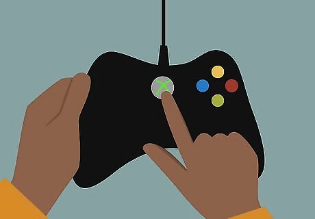 Click on the “Guide” button on your Xbox 360 controller. The Guide button is the round button marked with an “X” in the middle of the controller.