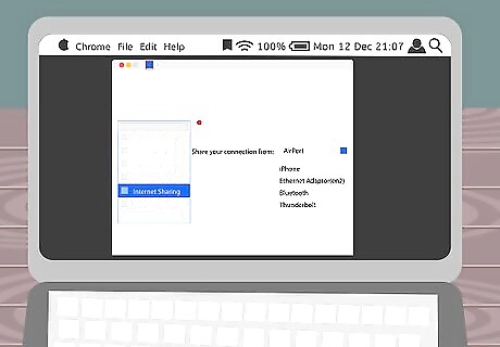 Click on “Sharing” and place a checkmark next to “Internet Sharing.”