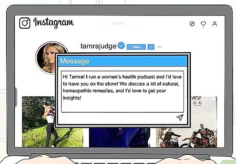 Message her on Instagram to make a more direct inquiry. Use the “Message” button on Tamra’s profile to send her a direct message. Instead of offering cliche compliments, briefly explain why you’d like to speak with her, along with what she’d get out the experience. If your message is more unique and creative, there’s a higher chance that she’ll take a look at what you have to say! For example, try saying something like: “Hi Tamra! I run a women’s health podcast and I’d love to have you on the show! We discuss a lot of natural, homeopathic remedies, and I’d love to get your insights!” Your message will go into a messages requests folder, so Tamra won’t see it right away. With this in mind, don’t be disappointed if she doesn’t end up reading or replying to your inquiry.
