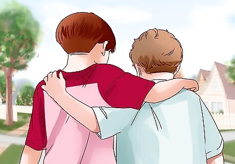 Be kind to others. Animals deserve a loving owner. Show your parents you are capable of handling that responsibility. Be kind to others to show them that you are the type of person who will be kind to your dog. Show consideration for your family members. If you see your dad out mowing the yard on a hot day, bring him a glass of iced tea. If you have siblings, be nice to them. If you fight less with your brother, it shows that you are a kind, responsible person. Be a good friend. Showing kindness to your friends will help your parents see what a great kid you are. Offer to let your buddy ride your new bike.