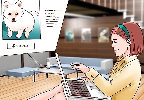 Create a budget. The best way to convince your parents to let you have a dog is to prepare a thoroughly researched presentation. You will definitely want to include the financial aspects of dog ownership in your request. Do some research about how much it costs to adopt and raise a dog. Talk to the experts. You can ask the staff at the shelter how much the adoption fees are and if you will need to pay for vaccinations. Contact a local vet. You can phone the office and ask for general pricing information. Ask how much it will cost to spay or neuter a dog, and how much regular office check-ups cost. Visit a local pet store. You can price food, toys, and grooming products. Combine all of your information to figure out the monthly cost of dog ownership. If you plan to pay for part of the dog's care, make that part of your presentation, too.