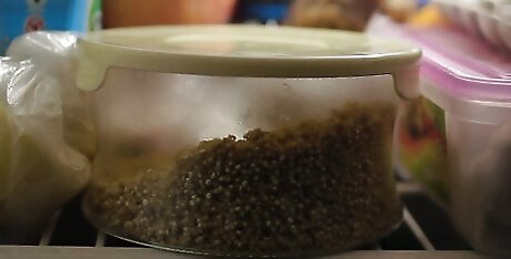 Put your rinsed quinoa into a microwave-safe dish. Either rinse your quinoa in a fine mesh colander for 30 seconds or purchase quinoa that has already been prewashed. Use ceramic or another microwave safe bowl that will provide you with enough room to add in the liquid.