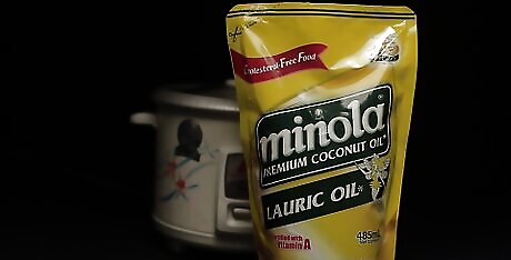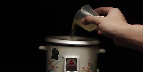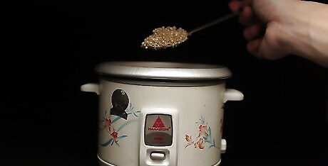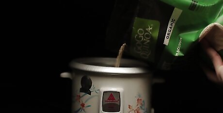 Coat the bottom and sides of your rice cooker with coconut oil. This will help your quinoa from sticking to the pan while cooking. It also helps keep the quinoa fluffy by adding moisture and texture. Some non-stick cookers may not require a coat of coconut oil prior to cooking but it is always an option and will not affect the cooking process of your quinoa.