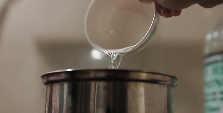 Add 2 cups (16 fl oz) of water to a saucepan. After pouring in your water, add your 1 cup (190 grams) of quinoa to the pan and gently to stir to mix together. When adding liquid to your quinoa use 2 parts or 2 cups (380 grams) water for every 1 part or 1 cup (8.0 fl oz) of quinoa.