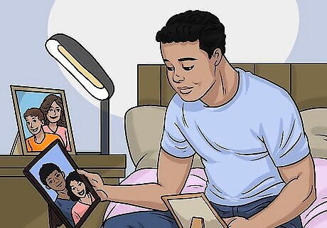 Choose a few of your favorite family photos and place them in important areas of your new home. Try to put them where you'll see them often, such as your room or your hallway. If you enjoy crafting or it is your specialty, create a photo collage of your family instead of using framed photos, whether it be digitally (you can set it as your wallpaper) or handmade. Seeing the familiar faces of your family provides a sense of closeness and helps you still feel connected to them, as if they are there with you.