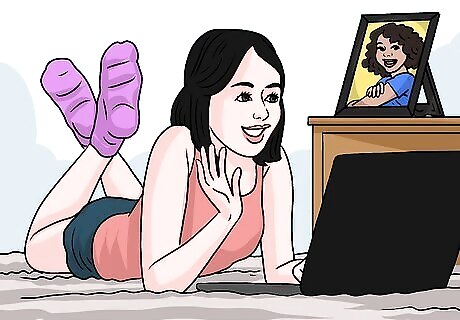 Keep in touch. One of the biggest fears of moving is losing friends and slowly becoming more and more distant. Being so far away means rarely seeing your friend anymore, and busy schedules make it difficult to contact one another, and there is always the factor of being replaced with a new friend, which can complicate things and ruin friendships. Print out pictures of you and your friends together and put them in your room. Print some copies for your friends as well. This will help you remember one another and may comfort you when the prospect of moving gets you down. Constantly seeing these photos is a gentle reminder that your friends will always be there for you. There are many forms of communication for staying in touch. Share pictures and videos. Let your friends know about the differences, both good and bad, between your old home and your new place, and update them on the most interesting things that have occurred. Call and text one another frequently, if possible. You might be able to plan visits during summer, spring or winter break for you to visit your friend or for them to visit you.