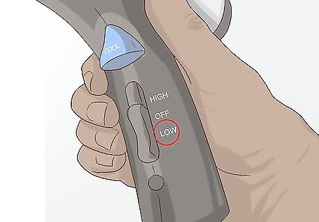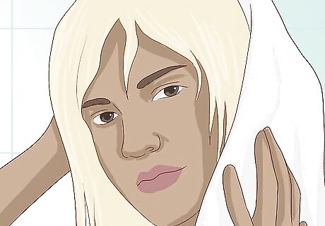 Pat your hair dry. After washing your hair, gently pat it dry using a soft towel. Never rub or pull the strands since doing so could cause damage, making your hair color look dull and lifeless. Try to let your hair air dry as much as possible, then touch it up using the cool heat setting of your hair dryer. Avoid high heats that may damage your hair and make the color dull. For this reason, it's also best to avoid heat styling tools like flat irons and curling irons.