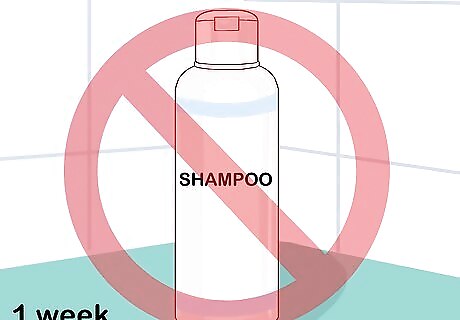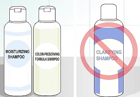 Opt for gentle shampoos afterward. After the first week passes, you can probably return to shampooing your hair. Select a gentle moisturizing or color-preserving formula, though, and stay away from harsher clarifying shampoos. You should also skip one or two days in between washings to avoid stripping away too much. It’s also a good idea to use warm water instead of hot water when shampooing. Hot water will dry your hair out faster, worsening the damage caused by bleach. Try to make your showers shorter, too, to limit the amount of time your hair is exposed to the water.