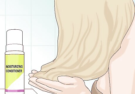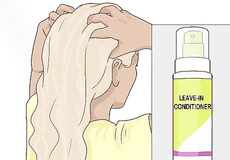Use leave-in conditioner. When you begin shampooing again, put away the clarifying conditioner and switch to an ultra-hydrating leave-in conditioner. Your hair is still dry and damaged at this point, so you need to use a product that will add moisture back into your hair to restore it to health. After washing your hair with shampoo and rinsing it out, apply the leave-in conditioner according to label instructions. This may mean massaging a dime-sized amount of conditioner into your hair or spritzing your entire head of hair with conditioner in spray form. Either way, it’s important to leave the conditioner in your hair without rinsing it out.