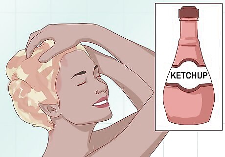 Follow up with conditioner. Regardless of whether you use chlorine removal shampoo or ketchup, you need to follow your shampoo ritual with a moisturizing conditioner. Hair dye, clarifying shampoos, and acidic tomatoes can all strip your hair of its natural, necessary oils. Applying a conditioner can help restore the moisture that would otherwise be lost. The exact conditioner needed may vary by hair type and damage. If your hair is otherwise healthy, any standard conditioner should probably be fine. If it feels dry or brittle, however, a leave-in conditioner would be better.