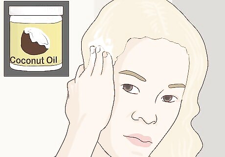 Apply an olive oil or coconut oil mask once a week. A natural oil mask can be a great way to restore additional moisture to your hair. Apply the oil mask before shampooing your hair, leave it in for 30 to 60 minutes, then wash your hair with a gentle shampoo and skip the leave-in conditioner. Do this about once a week until your hair feels and looks healthy again. You'll need anywhere from 2 to 4 Tbsp (30 to 60 ml) of oil, depending on the length of your hair. Stick with either olive oil or coconut oil since other oils may not hydrate your hair quite as well. Focus on applying the oil to your hair while avoiding the scalp. Your scalp should already be producing oil at this point, and applying additional oil to the scalp can make your roots feel grimy even though the rest of your hair could still be dry. If you're not interested in natural hair masks, you should still consider a commercial hair mask once per week for correcting bleach damage. Apply the commercial mask according to label instructions.