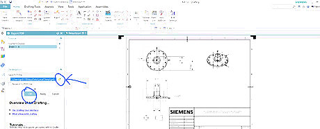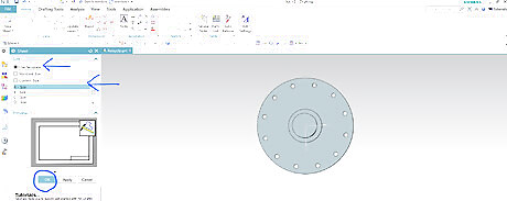 Choose the appropriate size for the drafting sheet. Look to the left side of the screen under the blue tab labeled "Sheet" and click on “Use Template”. Make sure “A - Size” is already selected and click “OK”. Drawing sheets range from A, B, C, D, E, and F sizes with their own specific dimensions in inches in the USA. In this example, the dimensions for a “A” sheet are 8.5 by 11 inches. You can also use the “Standard Size” or “Custom Size” sizes for a drafting sheet. Note: "Standard Size" is E size with the dimensions as 34 by 44 inches.