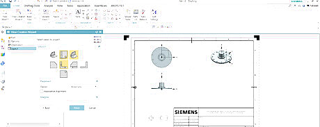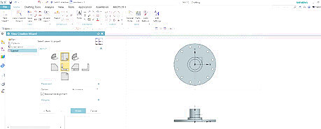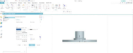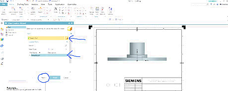 Hover over the yellow box with a L shaped figure titled “Parent View”. Click the “Top” view which is directly above the “Parent View”, and the "Top" view will turn yellow too. Look to the right of the "View Creation Wizard" dialogue box, the drafting sheet displays the views of the part as you select them. The “Top” view will appear above the “Parent View”.
