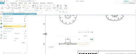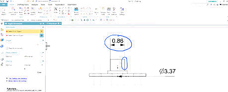 Click "Rapid" tool under the gray "Home" tab. A dialogue box labeled "Rapid Dimension" will appear to the left. The “Rapid” tool shows a lightning bolt with red arrows across it to dimension it.