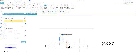 Select the first line you want to dimension from. This is where your measurement starts. Select it in any view besides the isometric view on the drafting sheet. This will display an orange dimension if the dimension is a radius, diameter, or length of the line itself. If you want this dimension displayed on the drafting sheet, simply move where you want the dimension and click (it will turn black). Keep dimensions outside the border of the views to keep the drafting sheet neat and organized. Please Note: Do not place any dimensions on the isometric view.