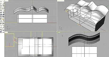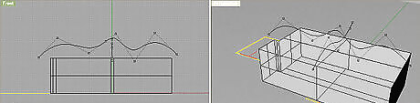 Create Form - we will generate a ‘draped’ form using Rhinoceros. This is done simply by drawing a shape curve and a straight curve, then using the Extrude CurveAlong Curve tool to generate a surface between the curves. The surface can then be transformed into a solid using the Extrude Surface tool. You can import just the surface into Revit, but the flat surface will be difficult to visualize on-screen.