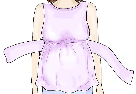 Pinch the 2 sides of the sash together, instead of knotting the ends. Offset the point at which they meet to the right or left side of your belly, so that your sash will hang to the side of your stomach.
