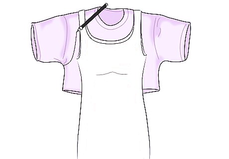 Mark the outline of the tank top sleeve holes on your large t-shirt. Use a fabric pen to draw the arcs.