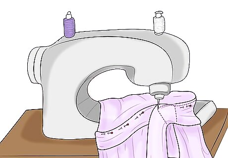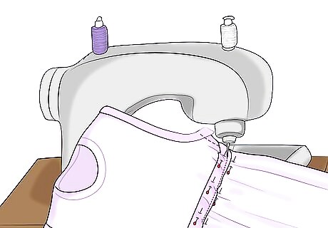 Match your sewing machine thread to your t-shirt color. Sew the armhole hems with a 1/8 to 1/4 inch (0.3 to 0.6 cm) seam allowance.