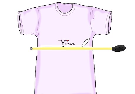 Remove the shirt carefully. Smooth the shirt and place it on a craft table, above a self-healing mat. Measure the bust line with a plastic ruler and mark your line 1/2 inch (1.3 cm) below the pin line to allow for hemming later in the process.