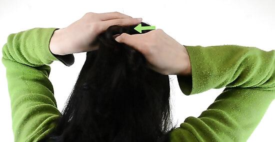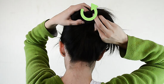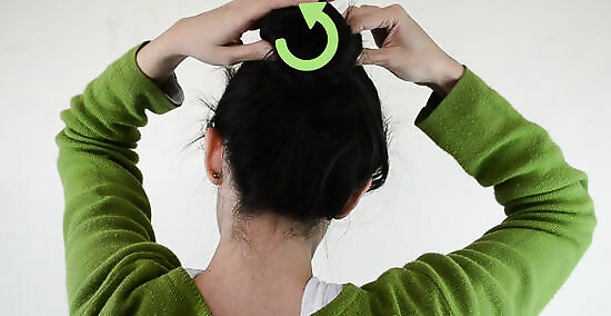 Curl the ponytail up into a bun without the section that you’ve removed. With the section of hair that you’ve separated hanging free, curl the rest of the ponytail around the base to form a bun. Use bobby pins to secure the bun in place.