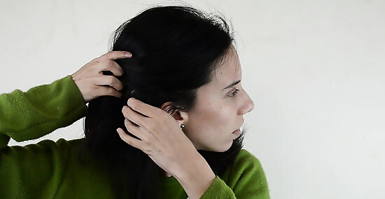 Braid the section and secure it with an elastic. Once you’ve chosen the location and size for the section of hair, create a three-strand braid. Divide the section of hair into three smaller sections, and cross the outside pieces over the center piece, alternating sides each time. Use a hair elastic that’s similar in color to your hair to secure the braid. If you prefer, you can create a two strand braid by dividing the section into two smaller sections and crossing them over one another until you reach the end of the hair. Give the braid extra flair by twirling the two sections before starting the braid. After you've created the braid, give it a spritz with hairspray to keep it in place all day. If an elastic isn't strong enough to secure your braid, you can slip a bobby pin or two into the braid around the elastic to keep it in place. You can also substitute a clip for the elastic if you prefer.