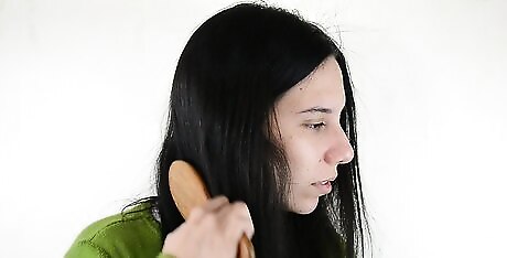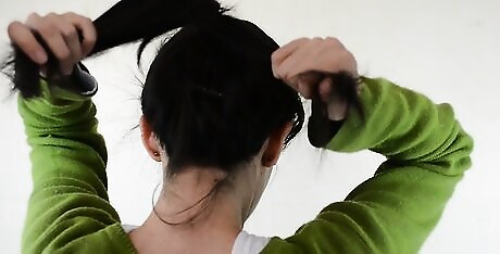 Pull your hair back into a high ponytail. Use a comb or brush to brush your hair back into a ponytail. For maximum impact, place the pony fairly high up on your head and secure it with an elastic. If you prefer a more subtle look, you can place the ponytail at the back of your head or even at the nape of your neck.