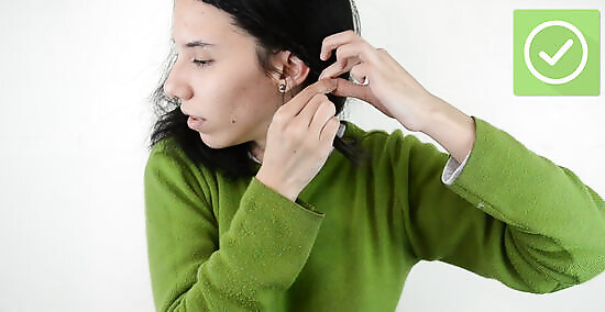 Work in a section of hair from behind the other ear and finish the braid. Once you reach the end of the braid, gather a section of hair from behind your other ear. Work it into the braid to finish it, and secure the end with a small elastic. Spray your hair with a flexible hold hairspray to make sure that the braided headband stays in place.