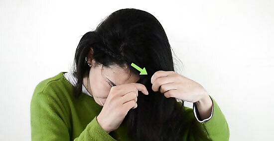 Add a section of hair from the opposite side of the head and continue braiding. When you reach the other side of your head, take another section of hair along the line of the headband. Connect it to one of the strands in the braid, and continue braiding.