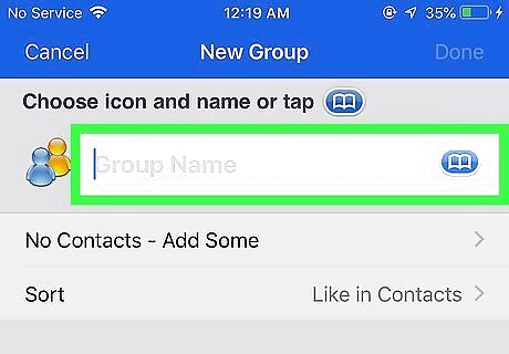 Make a contact group on the third-party app. Each app will work slightly differently. For Groups, open the app and tap Add New Label. Name the group. Tap No Contacts – Add Some to add contacts to the group.