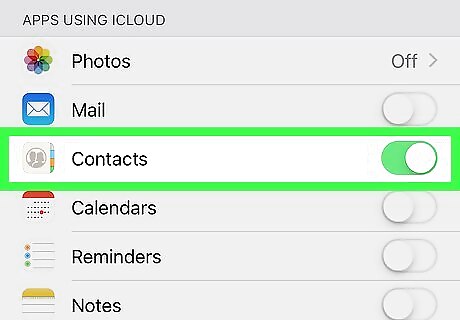 Enable the iCloud contacts setting on your iPhone. Go to Settings, tap on your name, then tap iCloud. Make sure the Contacts slider is enabled.
