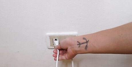 Plug your curling iron in to heat up. Plug your curling iron in close to a mirror and leave it to heat up for 2-3 minutes. Adjust the curling iron to the low setting if you have very thin hair or coloured hair. If your hair is thick and healthy, opt for the medium or high setting. The higher temperatures tend to set the curls better, but they can damage your hair over time. It's best to curl your hair in a bathroom in front of a well-lit mirror. Experiment with different settings to find the lowest setting that effectively curls your hair.