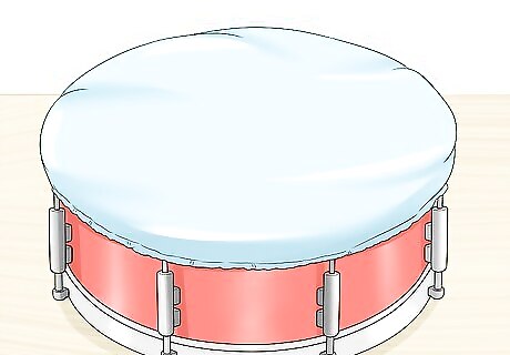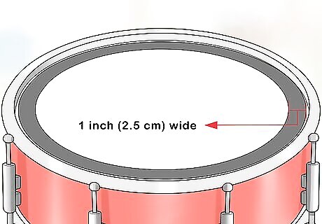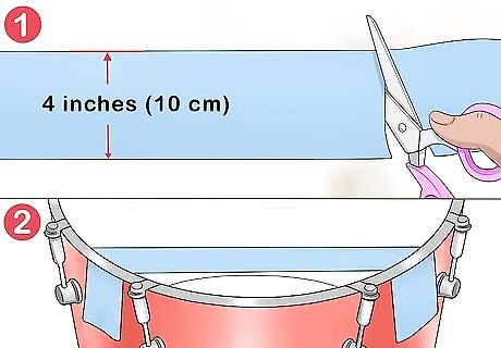 Place a cloth strip against the inside of the batter head. Cut a strip of cloth about 4 inches (10 cm) wide. Secure the strip against the drum head by tightening the ends inside the tuning rim. The strip is usually set to the left or right side of the drum head, not in the center.
