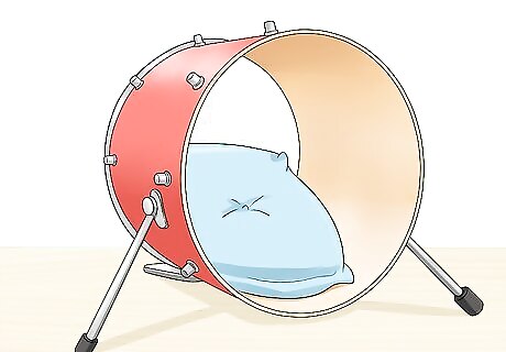 Put a blanket or pillow inside your bass drum. Experiment with the placement of the muffling. Note the difference of sound when the muffling is touching or not touching the batter head. The batter head is the drum head that is struck with the kick pedal.