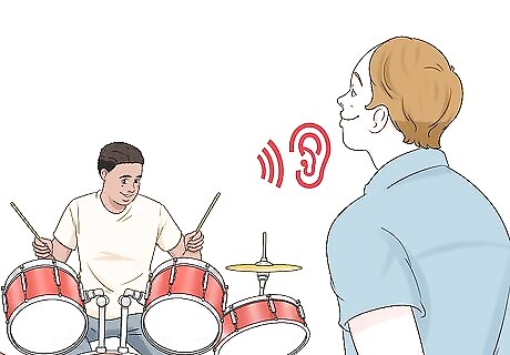 Put a drum ring on top of your snare or tom drum. Drum rings are usually about 1 inch (2.5 cm) wide, made of thin plastic, and rest around the diameter of the drum. Although these rings are available in music stores, you can make your own by cutting a circle from the outer edge of an old drum head with a razor blade.