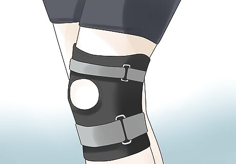 Wear a knee brace. A knee brace can be very helpful during the healing process as it will prevent unnecessary knee movements and will give stability to your injured joint. However, do not wear the brace for long periods of time, as it may weaken muscles. A knee brace should not be too tight or loose. A tight brace can cut off circulation to your feet and ankles while a loose brace can slide down the knee and be of no use. A simple method to see if you are wearing the brace correctly is to slide down two fingers behind straps. If you are unable to pass two fingers under the straps, then the brace is too tight; loosen the straps. If after passing two fingers you can pass the third finger too, then the brace is too loose; fasten the straps and repeat the two finger method.