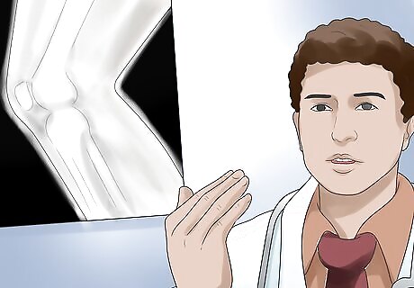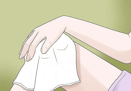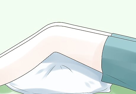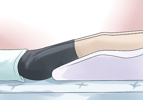 Elevate your knee above heart level. Knee elevation will reduce swelling around the joint. This is because when your knee is elevated above your heart, it speeds up the blood drainage in that area. This, in turn, will limit the swelling in that area. Use a pillow to elevate your knee while you are sleeping.
