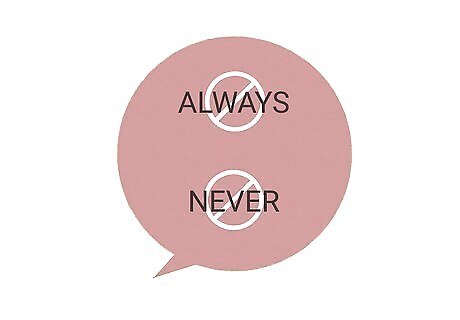 Resist the urge to overgeneralize. Over-generalizations can be harmful because they can put the other person on the defensive. Try to be really specific when you talk about what's bothering you. That will make it easier to find a solution. Instead of saying "You always cut me off and never let me finish my sentence," try going with the more diplomatic "Please don't interrupt me; I let you finish talking and I'd appreciate the same courtesy."
