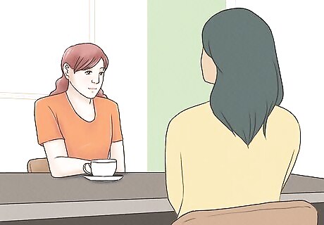 Maintain eye contact with the other person. Show them that you're interested in what they're saying by being alert and showing concern in your face. Don't stare at them aggressively, though. It's okay to blink normally and even glance away occasionally. The point is just to let them know that you are paying attention to what they are saying.