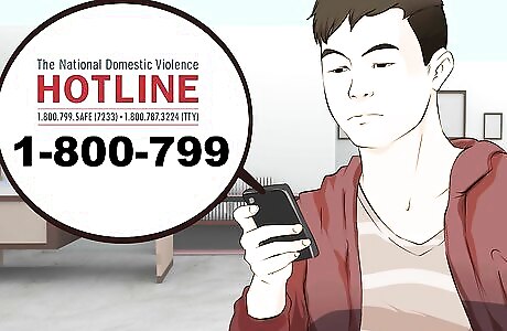 Develop a safety plan for when the abuse happens. Even if you have not been abused by your mother's boyfriend, witnessing her abuse puts you in danger. You and your mother (and any other siblings) need to sit down and talk when the abuser is not home. In the midst of the abuse, you might discuss ways to protect younger children and yourself. To prepare for possible abuse, you might have phone numbers handy of emergency services, domestic violence hotlines, local shelters, family members, or your mother's close friends who may be able to help. You may decide on a safe place in the home to take yourself and any younger children that is close to exits or that has few potential weapons.