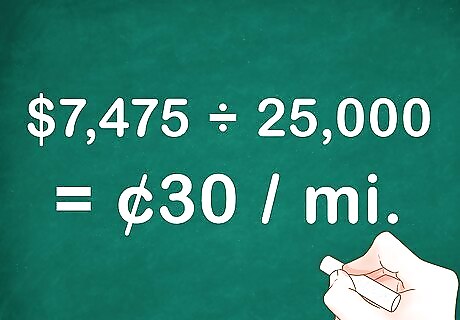 Calculate your auto expense per mile. Add together auto-related business expenses and the annual depreciation. Then divide this total by the total mileage traveled during the tax year. This results in your actual auto expense per mile. For example, assume your auto-related expenses total $3,475 for the year, and your straight-line depreciation is $4,000. Then your total expenses will be $7,475. If you drove 25,000 miles in that year, then your expense per mile will be $7,475 / 25,000, which is 0.299, or almost 30 cents per mile.