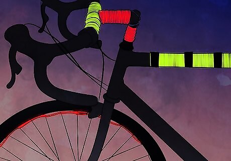 Paint your entire bike with glow-in-the-dark paint. To keep your bike safe and unique, paint your bike with glow-in-the-dark paint. There are many different paint colors, ranging from a plain white to neon colors. Glow in the dark paint is readily available at supermarkets, hardware stores, and craft stores, as well as online. Craft stores are likely to have the widest array of colors.